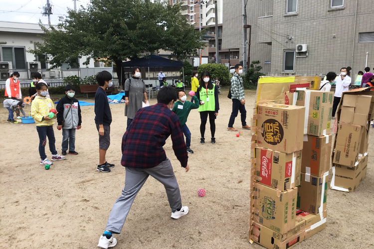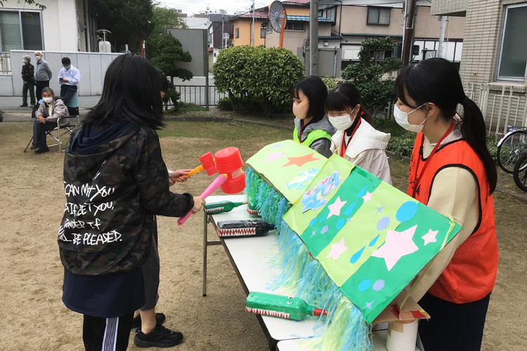 このイベントでは学生が実行委員会を組織・運営し、大人たちは全面的にバックアップをする。イベントを通じて彼らも成長する。それが、30年間続いている秘訣かもしれない。開会式では、佐藤笑香実行委員長(山形大学2年生)が自作の可愛い「てるてるぼうず」を披露、雨を押しとどめた大活躍に全員から拍手喝采が贈られた。オープニングダンスではボランティアを含め全員で体を動かし、屋外で体を動かす心地良さを久々に感じることが出来た。学生による手作りの遊びが中心の各コーナーには、子どもたちの笑顔があふれていた。シャボン玉は液に洗濯糊を混ぜる工夫をして、びっくりするほど大きなものが出来た。万が一の誤飲を防ぐために口で吹くのではなく、ピストル型のしゃぼん玉マシンを複数台提供したところ、こちらも大好評だった。