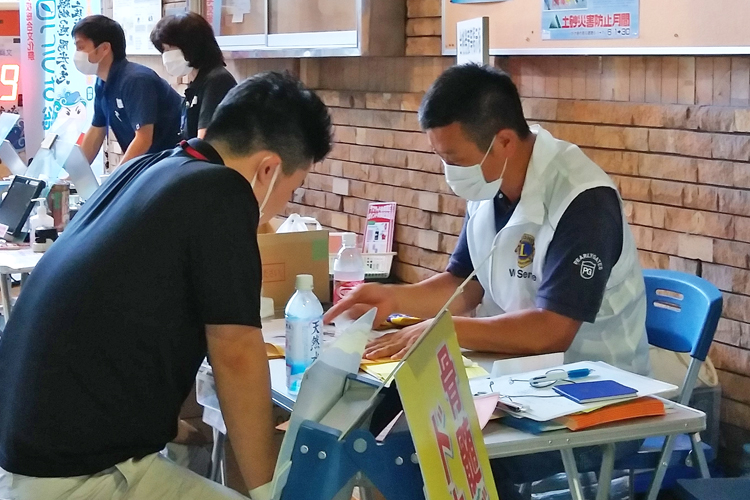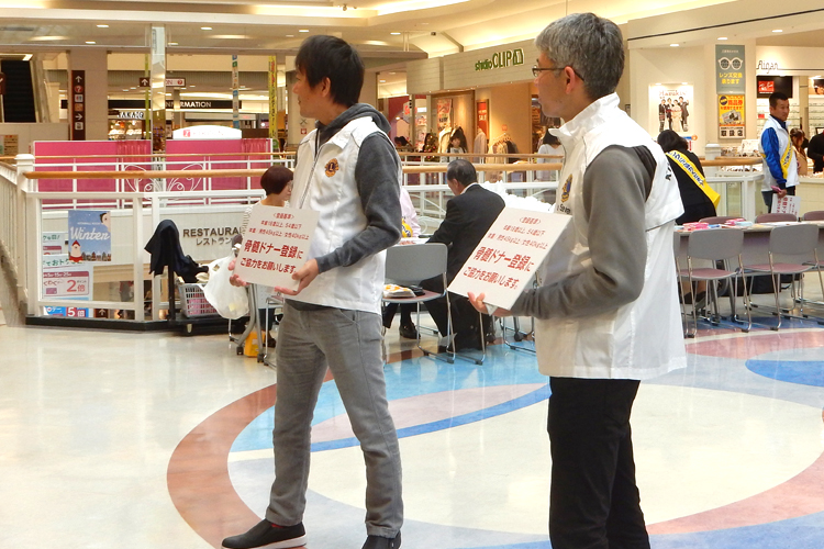 高知黒潮ライオンズクラブが主催するドナー登録会は、毎月1回、献血ルームで開かれる他、大型商業施設のイオンモール高知や県庁などの役所、学校などを会場に、年間50回ほど開催される。ドナー登録を行うにはさまざまな要件があり、登録会では日本骨髄バンクが認定する骨髄ドナー登録説明員が説明して、よく理解してもらった上で登録手続きを進める。高知黒潮ライオンズクラブでは会員23人がこの説明員の認定を受けている。説明員になるには座学の説明員養成研修と実地研修を受ける必要があるが、高知黒潮ライオンズクラブの場合、協議会の吾妻副会長がその指導員の資格を持ち、身近なところで研修が受けられるという大きなメリットがある。今期の山﨑会長は入会して間もなく参加したドナー登録会の活動に触発され、すぐに説明員の資格を取得した。大勢の人が集まる商業施設での登録会では、会員が通路に立って通りがかりの人に声を掛けて登録を呼び掛けるが、最初は戸惑いもあったと言う。
