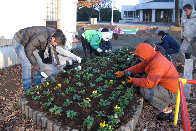 藪塚ライオンズクラブ(25人)は年2回、花を植栽する奉仕活動を行っている。1989年にクラブが結成された頃から継続してきた事業で、現在は4カ所で実施、花壇とプランターをたくさんの花でいっぱいにしている。