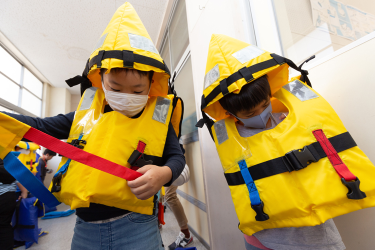 学校側にもこの思いは伝わり、春には沿岸部の3校を対象とすることが決まった。しかし、その後の準備がなかなか進められない。今年は避難訓練を一緒に行うことで子どもたちにライフジャケットに実際に触れてもらうことも重要視していたため、準備は更に難しかったという。子どもたちのための奉仕活動なのに、彼らを不安にさせてしまうことは避けなければならない。新型コロナウイルスによる休校期間もあり、何度も打ち合わせを重ねて実施に向けて準備を重ねた。こうして半年以上の時間を掛けて、ようやく実現したのが今回の贈呈式と避難訓練だった。