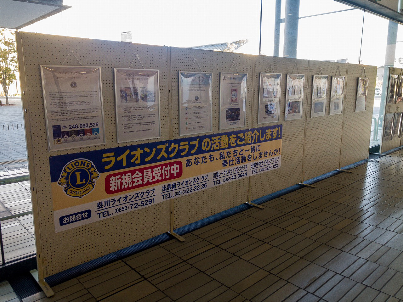 もう一つ、初めての開催となったものがある。我々ライオンズクラブが日々どのような奉仕活動を行っているかを幅広く市民の皆様に知って頂くと共に、活動への理解及び参加、入会へとつなげるためのパネル展だ。出雲市 (長岡秀人市長) の後援を得て、献血会場の一つとなった出雲市役所本庁舎の1階南側展示スペースで開催。多くの来庁者が目をとめてくれた。