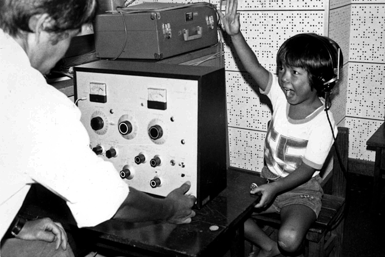 赤ん坊は生まれた時からさまざまな音を耳にする。家族の声、医師の足音、そして自分の心音など。母親のおなかにいた時とは違う世界に足を踏み入れ、音や言葉のシャワーを浴びながら成長していく。しかし、難聴児の場合はそれがさえぎられており、聴力だけでなく精神や知能、社会性など全般的な発達に影響が出る恐れがある。難聴のより早い発見と適切な対処により、そうした影響は大幅な改善が見込めるにもかかわらず、1970年代の日本の難聴児対策は不十分で、欧米より30年は遅れていると言われていた。
