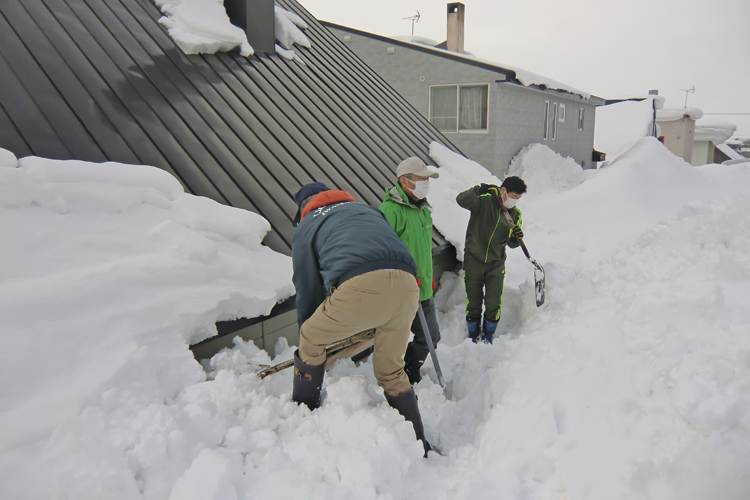 今冬は北海道や本州日本海側の広い範囲で大雪に見舞われた。岩見沢市もご多分に漏れず、1月末の積雪が169㎝と、過去10年間で2番目の記録的な豪雪となった。各家庭はもちろんのこと、幹線道路の除排雪すらなかなか進まず、使用出来る道幅が狭くなったことなどから路線バスが運休。JR列車も運休し学校が臨時休校になるなど、全国ニュースにもなるような状況だった。岩見沢市社会福祉協議会は、新聞などを通じて広く独居高齢者宅の除雪ボランティアを募集。市内の企業や学生、更に他地域の学生などによる除雪ボランティア活動が、新聞・テレビで報道されるようになった。