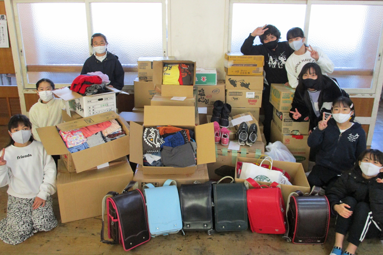 児童らは手作りのチラシを作成し、持ってきた衣類を入れる箱を各クラスに設置するなど、一生懸命に取り組んでくれた。予定では、集まった服は児童とライオンズ・メンバーが一緒に荷造りして発送の準備をするはずだったが、新型コロナ感染拡大防止のため部外者は学校には入れなくなってしまい、彼らだけで荷造りまでしてくれた。約1カ月半で集まった衣類等は、大きな段ボール箱10個以上になった。中にはランドセルを提供してくれた子もいた。