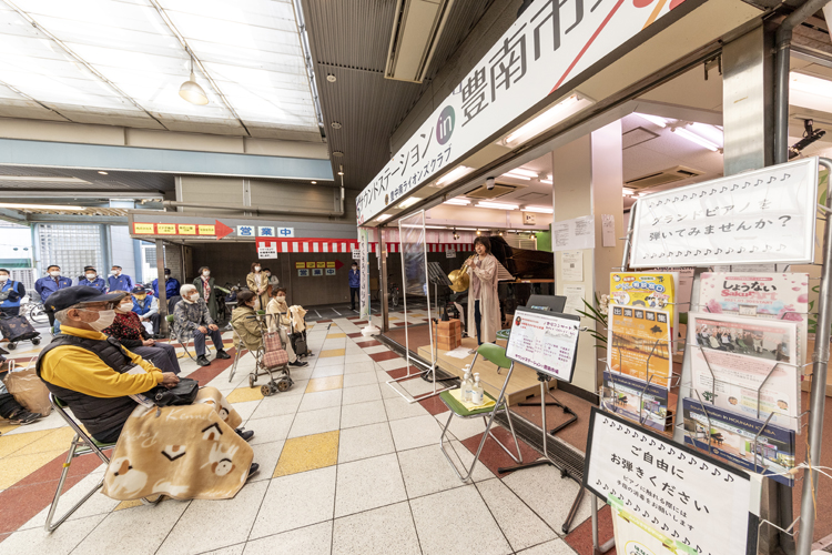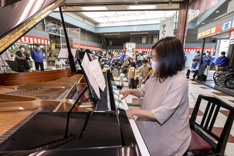 サウンドステーションin豊南市場は、ステージが設けられた全国でも珍しいスタイルのストリートピアノだ。この特性を生かし、毎週木曜日午前中にはコンサートを開催。豊中市在住のピアニスト中野聡子(としこ)さんと週替わりゲストのコラボレーションを多くの人に楽しんでもらっている。また運営委員会では、それとは別に季節ごとに特別イベントとしてコンサートを企画。8月21日に実施した「夏休みこどもコンサート」を皮切りに「秋いっぱい市場コンサート」「豊南市場Christmas 2020」「東日本大震災復興応援コンサート」とさまざまな特別イベントを開催してきた。加えて月に2回、絵本の読み聞かせも行われており、ストリートピアノの枠を越えて市民に愛されるスペースとなっている。