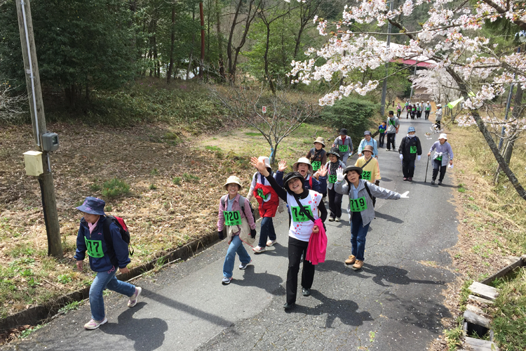 今回は18年に完成した三次市甲奴健康づくりセンターゆげんきを出発点に、甲奴町の弘法山までを往復する8kmのコースを選んだ。上下ライオンズクラブには甲奴町在住の会員も多く、今回は甲奴町を起点にしたいという気持ちがあった。町を流れる上下川のほとりに咲く桜は周辺では有数の花見スポットだ。それを見ながら歩くコースを設定した。感染対策にも注意をし、何とか実施にこぎつけた。