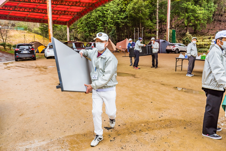 大会当日を前に、広島県の新規感染者数は全国平均を大きく下回っており、問題なく開催出来る状況だった。ところが、実施予定の4月4日は1週間前から雨予報が出ていた。クラブでは様子を見ながら雨天時の対応を考えた。弁当を手配しているため、中止の場合も取りに来てもらうことをチラシには明記していた。しかし、せっかく来てもらうのであれば、何か少しでも意義のあることが出来ないか。そう考えたクラブは、歩き始める前に予定していたウォーキング講座だけでも実施することを検討。講師をお願いしていた方々に打診したところ、快諾。屋根付きの広場であるウイングドームを借り、雨天時でも参加者に楽しんでもらえる手はずを整えた。