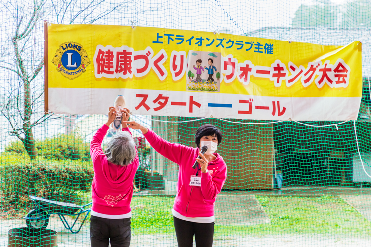 上下ライオンズクラブはこうした地元愛にあふれた土壌の上で活動している。クラブが事業の柱として実施してきたのが約30年前に始まった健康づくりウォーキング大会だ。市民の健康と、地域のつながりを強めることを目的に開始した。当初は上下町民会館から矢野温泉までを往復する約10kmをコースにしており、その後は上下町のショッピングクロスすいすいから翁山までのコースが主流となった。こちらも約10kmの道のりだ。翁山は上下町から見える山で、市民に親しまれている。午前中に出発し、クラブが提供する弁当を食べて帰ってくるのが恒例だ。