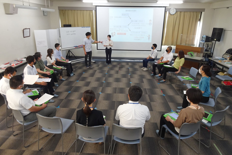 昨年度は、新型コロナウイルスの影響で開催を中止したが、今年度は7月26日と27日に英数学館の多目的室で実施した。対象は幹事校の英数学館小学校・中学校・高等学校に加え、銀河学院(ぎんがの郷小学校・銀河学院中・高等学校)、近畿大学付属広島高等学校・中学校福山校の教員。コロナ対策をして、15人が参加した。