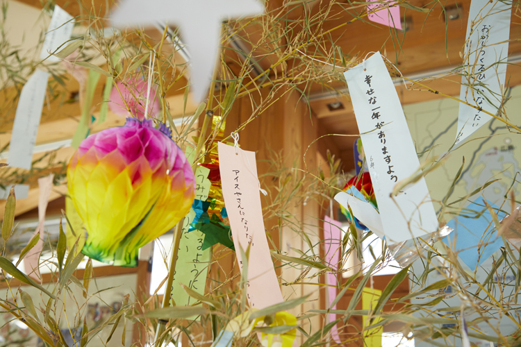 黒潮町内の小学校と保育所を対象に、園児や児童、先生・保育士にも短冊に夢や願い事を書いてもらい、ライオンズが用意した笹に飾り付けてもらうというものだ。展示場所は町の人々が日常の足として利用している公共交通機関、土佐くろしお鉄道の駅。利用客に季節感を味わってもらうと共に、短冊に書かれた子どもたちの夢や願い、子どもたちに向けた先生や保育士さんたちの思いを見てもらうのが狙いだ。また、子どもたち自ら短冊に書く作業を通じて夢や願いを持つ大切さを知ってもらうこと、自分の書いた短冊を見た人が笑顔になり、結果として地域社会の活性化につながっていくと実感してもらうこと、ひいては故郷に愛着を持ってもらうきっかけになることを、クラブは期待している。