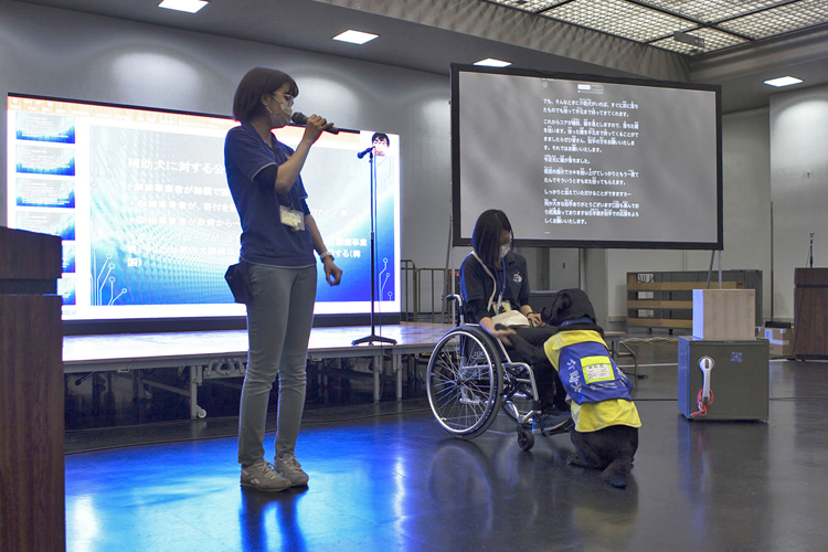 当日は各協力団体が会場内にブースを設置して、パネルや写真で補助犬の活動を紹介。中央のステージではPR犬による訓練のデモンストレーションや、義肢制作に当たっての苦労など体験談の発表が行われた。また、式典では佐々木地区ガバナーのあいさつの後、リハビリテーション科医師である高柳友子日本介助犬協会専務理事、川村義肢株式会社の川村慶社長、盲導犬、聴導犬、介助犬ユーザーの5人による座談会「イエローリボン・ランフェスタ・トークショー」を開き、それぞれの視点で補助犬について語り合っていただいた。これらの行事を通じて、参加した市民の皆さんに補助犬に対する理解を深めてもらうことが出来た。