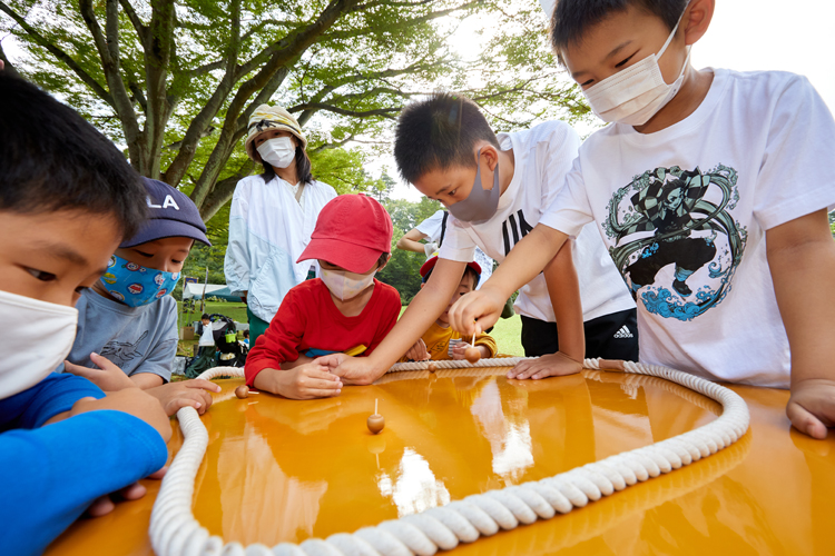 どんぐり独楽大会は、83年に仙台エコー ライオンズクラブが20周年記念事業として石卓を寄贈したのをきっかけに始まった。この頃にはクラブが植樹した苗木が大きく成長。その木々から落ちたどんぐりでこまを作り、その回転時間の長さを競う大会だ。普段はゲーム機器で遊ぶことの多い子どもたちも、この大会では自然の中で昔ながらの遊びに夢中になる。