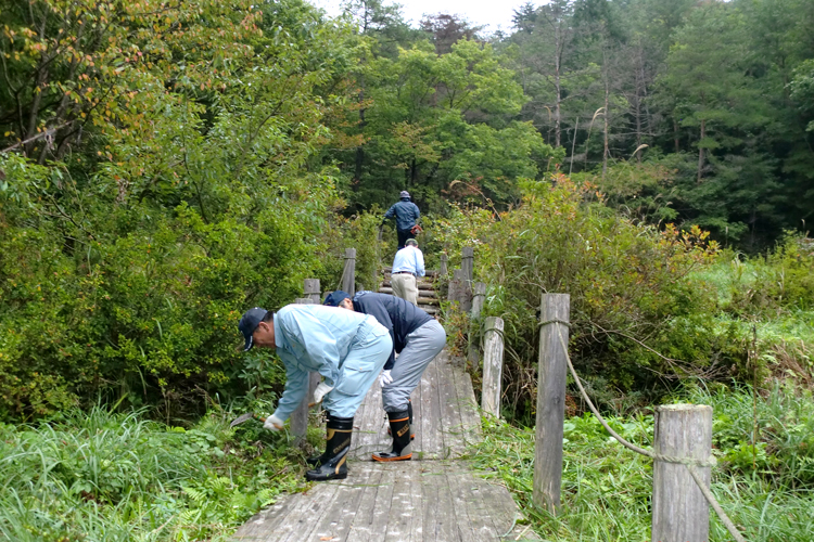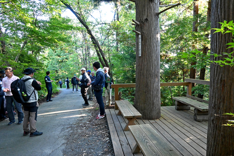 メンバーたちはウォーキングをしながらも、自分たちが手がけたコースや施設の状態が気になるようで、「看板が傷んできたから直さないと」「木の名前が分かるように名札を付けたらどうか」「ウッドデッキの杉が随分太くなったから修復しないと」などと話し合っていた。体験例会は次の活動に向けたリサーチにもなったようだ。