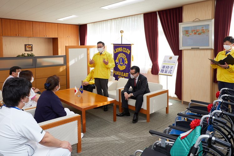 2022年2月に10周年を迎える福井イースト ライオンズクラブ(尾﨑喜代博会長/90人)は、福井県庁と福井市役所、並びに福井県、石川県、富山県にある主要病院の全17カ所へ車いす計55台を寄贈する記念事業を行った。