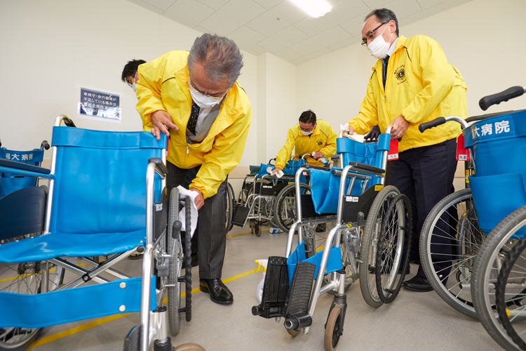 21年11月17日から寄贈先へ1カ所ずつクラブのメンバーが赴き、直接真新しい車いすを届けたのに加え、新型コロナウイルス感染予防対策として、使用中の車いすの消毒とメンテナンスも行ってきた。12月10日に、17カ所目となる福井大学医学部附属病院(福井県吉田郡永平寺町)を訪れ、予定していた全ての活動を無事完了した。