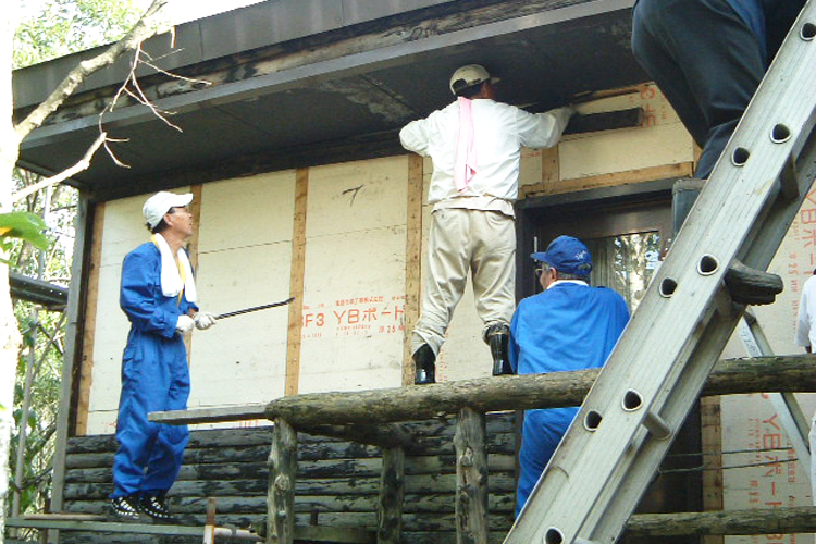 サンクチュアリ開設から20年を経た2000年、ボランティアが建てた観察小屋が老朽化で閉鎖されていると知った苫小牧ハスカップ ライオンズクラブは、結成10周年の記念事業としてその再建に取り組むことにした。10周年に会計を務めることになっていた加藤孝治さんは、雪の中で今にも倒壊しそうな小屋の様子を確認し、何とかしなければと強い使命感にかられたと言う。設計を担当した建設業の岡部喜代司さんと、建築板金を手がける加藤さんの2人を中心に、クラブ・メンバーの力を結集して工事を進めることになった。