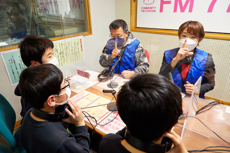 2月14日の放送は今回で5回目になる「西小スペシャル」で、三島市立西小学校5年生の男子児童3人をゲストに迎えた。防災について学ぶ授業で取り組んだグループワークの成果をラジオを通じて発表しようと、1月から同校の5年生児童が交代で出演してくれているのだ。
