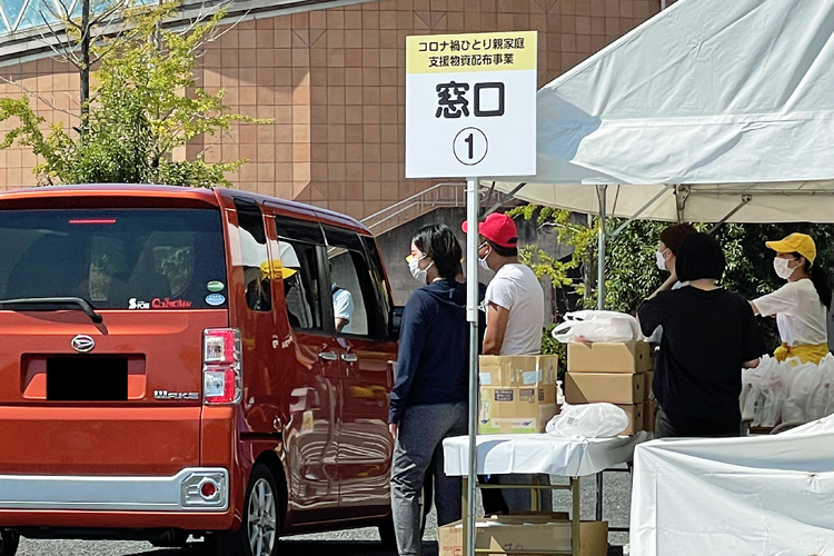当日は、熊本市南区にある総合運動施設「アクアドームくまもと」の駐車場の一角を提供してもらい会場を設営した。コロナウルス感染防止のため、ドライブスルー方式を採用。対象者は車に乗ったまま支援物資を受け取ることが出来る。熊本県のゆるキャラ「くまモン」も出動し一緒にイベントを盛り上げてくれ、事業はスムーズに進んでいった。協力して活動費・労力を捻出し合うことで、約600軒のひとり親家庭に食料品を中心とした支援物資を渡すことが出来た。物資調達、配布会場設営、その他雑費等、活動費の合計は約200万円に上った。
