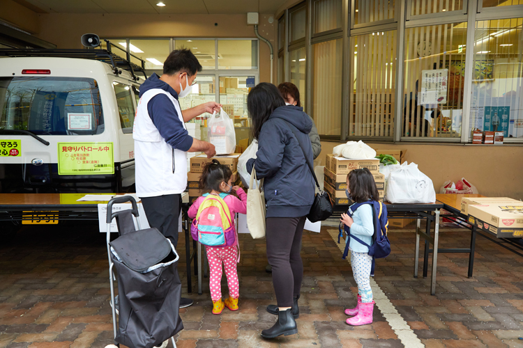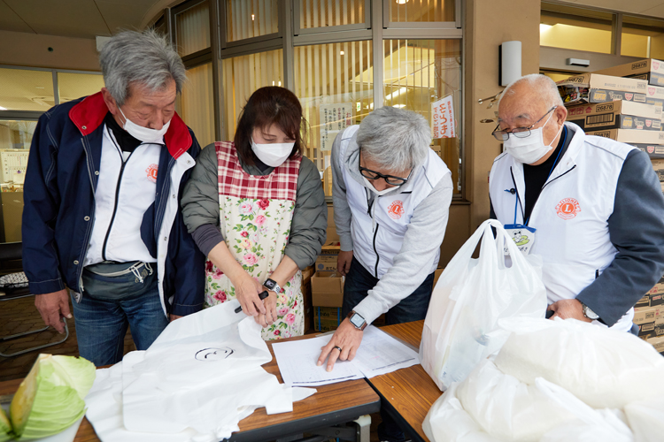 二つの取り組みが始まったきっかけは、5年前にライオンズが手探りで始めたこども食堂だ。港地区まちづくり協議会と協力し、毎月第2・第4土曜日に大人300円、子どもには無料で食事を提供。会場におもちゃを用意して一緒に遊ぶなど、子どもが安心して過ごせる居場所を創出した。この活動が呼び水になり、港地区まちづくり協議会の女性たちを中心にこども食堂・絆が発足し、共に活動を続けてきた。ところが2020年の春、コロナ禍で公民館が閉鎖になりこども食堂が続けられなくなってしまった。月に2度とはいえ、必要とされていた食事の機会が失われたままではいけない。「ならば食料支援をしよう」と言い出したのが、当時クラブ会長だった林谷誠幹事だ。