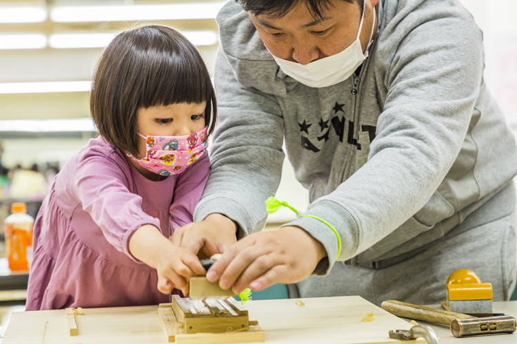 クラブがとりわけ力を入れているのが、体験ワークショップ。子どもたちに実際に手足を動かして体験してもらう豊富なメニューは、グリーンシティフェスタの最大の特徴だ。いすや箸を作る木工、編み物、ステンドグラス作りなどのコーナーが設けられ、子どもたちは真剣な表情で取り組んでいた。