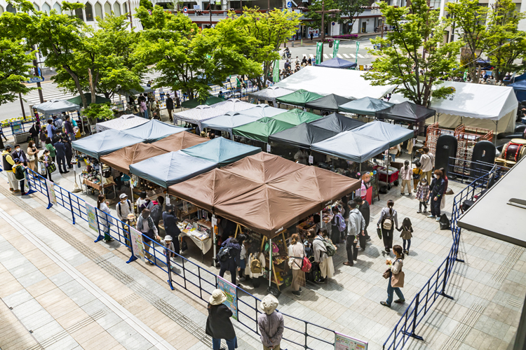 昨年は市役所の隣にある屋外スペースを会場としたが、 バケツをひっくり返したような雨に見舞われ、市役所の屋内を使わせてもらい急場をしのいだ。そこで今年はあらかじめ室内スペースを確保。トイーゴ広場のはす向かいにある商業施設「もんぜんぷら座」の地下ホールを体験ワークショップの会場に充てた。ステージやショッピングブースがあるメイン会場とは少し離れてしまうが、主役である子どもたちに体験ワークショップを楽しんでもらうことはこの事業の要で、雨で中止させるわけにはいかない。十分な広さを確保した上で、入場は100人までという人数制限を設け、感染対策も万全にした。