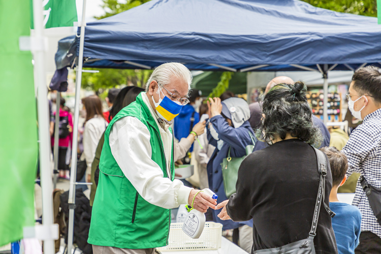今回ライオンズ・メンバーが最も苦労したのが「感染対策を講じた上で来場者にいかにイベントを楽しんでもらえるか」だった。トイーゴ広場のメイン会場の周囲を柵で囲い、出入り口を1カ所にすることで入場者数をコントロールした。感染症防止対策は、長野市が善光寺御開帳関連事業のために設置した対策チームのガイドラインに沿って行い、来場者の消毒・検温と登録書への記名を徹底。受け付けを済ませた人にはミサンガをつけてもらい、これをつけた人は他の会場と行き来出来るようにした。実際のところ、登録の際に名前を記載することに抵抗感を示す人も少なからずいた。本来ならば、気兼ねなくふらっと訪れてステージベントや体験ワークショップを楽しんでもらいたいところだが、こればかりはコロナの収束を願うしかない。
