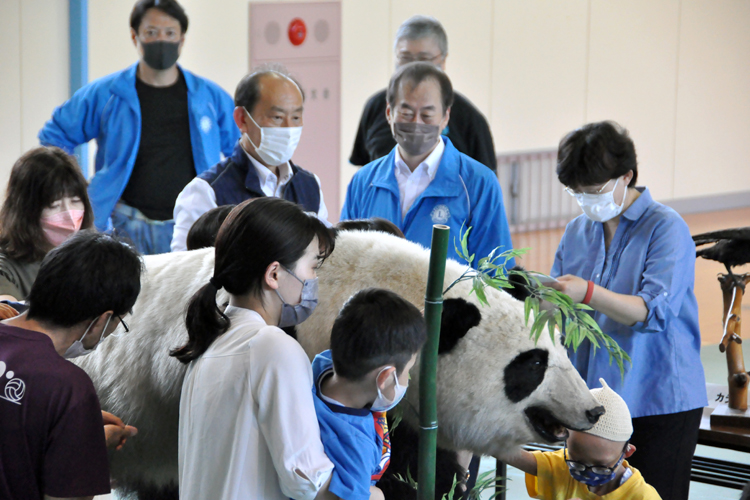 小学生の触察に続いて、幼稚園児と中学生、高校生にもパンダとの楽しいひと時を過ごしてもらった。はく製を触っている子どもたちからは笑顔と驚きの声がいっぱい。「パンダに触れてうれしかった」「パンダってかわいいんだね」「こんな貴重な体験をありがとうございます」と感謝の言葉を頂き、そばで見ていた私たちライオンズも満面の笑顔になった。