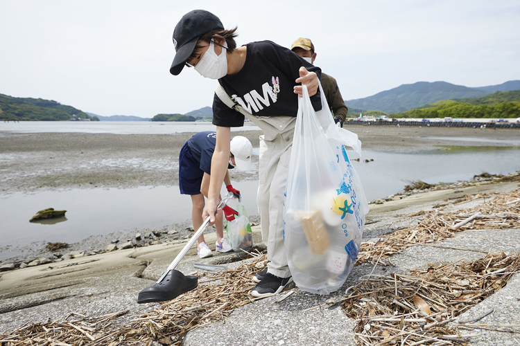 南宇和ライオンズクラブが5月30日の「ゴミゼロの日」に合わせて清掃活動を始めたのは2002年。片の浜での清掃活動は、その2年後の04年にスタートした。以来、貴重な干潟の環境を守るために、毎年春と秋に清掃を続けている。当初はクラブ・メンバーだけで行っていたが、町内の団体・企業にも協力を呼びかけて次第に参加者が増加。08年春には11団体の71人だったが、近年は200人ほどに増えてきた。