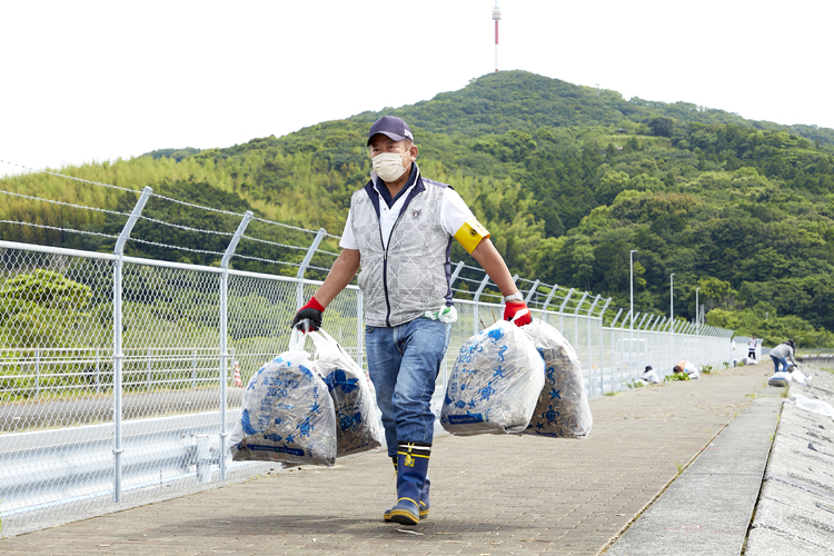 今回は、愛南町役場や土木事務所、消防本部、漁協女性部、町内の銀行や建設会社など、20団体から100人余りが参加した。予定では、御荘中学校からも38人が参加することになっていたが、数日前に町内で新型コロナの陽性者が複数確認されたことから、生徒の安全を最優先に考えた学校側の判断で急きょ取りやめになった。愛南町の豊かな自然を守る大切さを学んでほしいと考えていたクラブにとっては残念な出来事だったが、その他の団体は予定通りに参加し、無事に実施することが出来た。