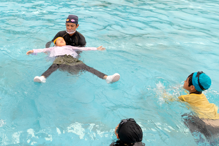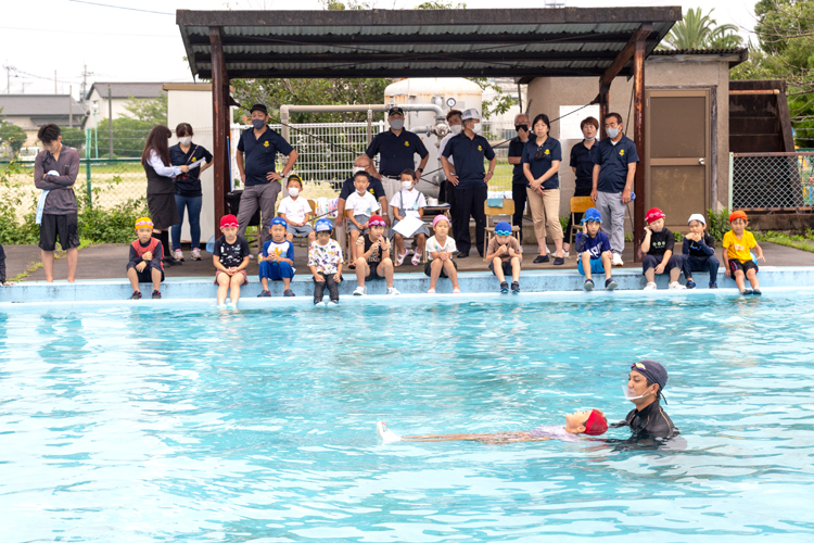 この日の教室では、比較的容易に長い時間水に浮いている子もいたが、それは学校のプールでのこと。実際に水に落ちてしまった子が、冷静に水に浮く体勢になって助けを待っていられるかといえば、そう簡単ではないだろう。それが出来るようになるには、何度も練習を重ねる必要がある。
