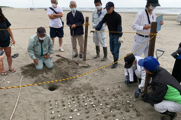 今年は木戸浜海岸の尾垂浜で2カ所、隣接する屋形海岸で4カ所の計6カ所で産卵があり、9月30日現在、このうち4カ所で孵化が確認された。この4カ所での産卵数は合計423個。1カ所当たりの平均で106個、孵化率85%と、非常に良い成績だ。今年は気温が高かったことに起因しているのではないかと考えている。光ライオンズクラブでは今後も地域の自然保護活動に力を入れていきたい。