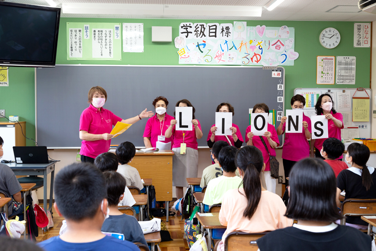 ふくいピュア ライオンズクラブが認知症サポーターに着目したのは、2年ほど前のこと。新型コロナウイルス感染症の影響で通常の活動が出来ない中、当時、青少年指導委員会の委員長を務めていた大家修子さんが、クラブ・メンバーで認知症サポーター講座を受けることを提案。21年2月のクラブ例会に講師を招き、会員全員で受講した。この時、認知症について多くを学ぶと同時に、福井市福祉保健部や福井不死鳥包括支援センターの職員から「小学生にもぜひ受講してほしいが、学校への働きかけが難しい」という話を聞いた。クラブは早速、福井不死鳥包括支援センターの担当地区にある順化小学校の校長に話を持ちかける。そしてその年の7月、小学5年生の総合学習の授業で認知症サポーター養成講座を行うことになった。