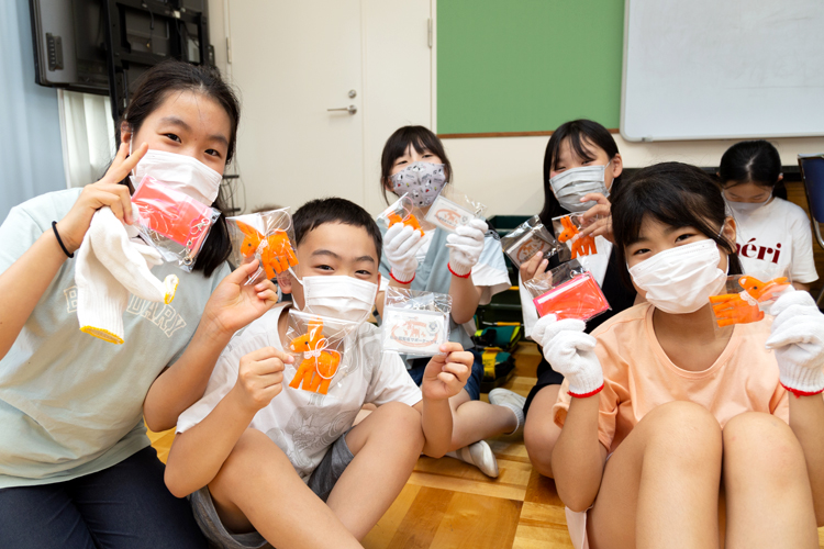 授業の最後には、認知症サポーター養成活動のシンボルである「ロバ隊長」のマスコットと、講座の修了証を児童全員に配布した。このマスコットは昨年、メンバーが手作りして市福祉保健部に200個を寄贈したもの。子どもたちが講座で学んだことを家族や友人と話し合うきっかけになれば、との願いが込められている。子どもたちは可愛いプレゼントに目を輝かせた。