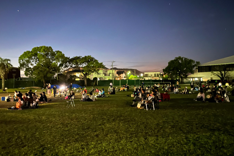 姶良ライオンズクラブ(松元卓也会長/16人)は10月8日、姶良市内にある龍桜高等学校グラウンドにて第3回星空の下の映画会を開催した。