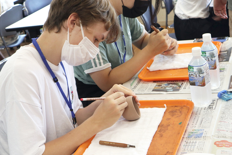 模擬ユースキャンプは9月3〜4日の1泊2日の日程で、美浜自然の家で行われた。活動内容としては、1日目にゴミ拾い、バーベキュー、交流を目的としたグループワーク、2日目には前日に拾ったゴミを用いたゴミアート制作と交流会を予定していた。残念ながら天候に恵まれず、1日目のゴミ拾いは中止となってしまったものの、代わりに用意していた一刀彫の湯飲み茶わん制作では、それぞれの個性を生かしたユーモアあふれる作品が仕上がった。互いの作品を鑑賞し合うことによって、交流を深める第一歩になった。その後はバーベキューで全員が協力して料理をし、共同作業を行うことで自然と会話も増え、留学生との交流が活発化した。一緒に作ったものを一緒に食べる、という行為の重要さに気付かされた。