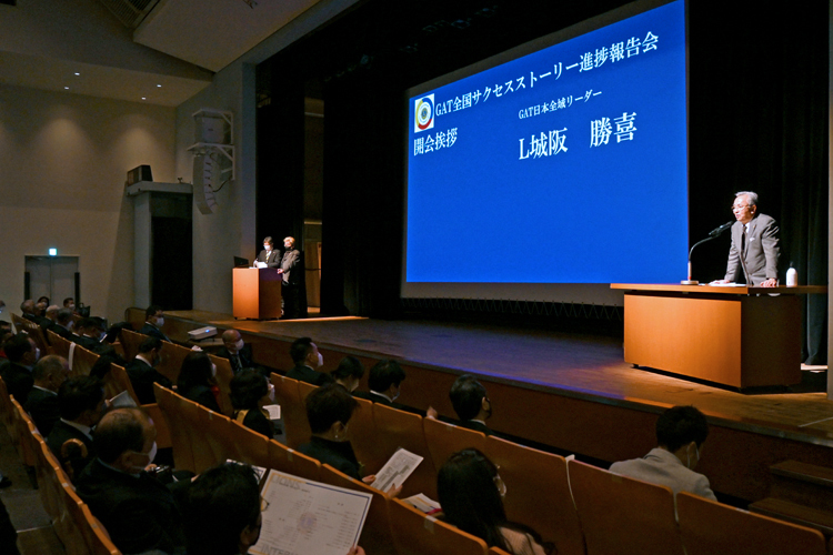城阪勝喜GAT日本全域リーダーは開会あいさつでこの報告会を「おでん」に例え、「多種多様なサクセスストーリーの鍋の中から自分たちに合った事例を選んで実行してほしい」と述べて、報告事例が参加者のクラブや地区の成功の糧になるよう期待を込めた。続いて山田實紘元国際会長はビデオメッセージで、「サクセスストーリーは確かに重要だが、うまくいかなかった失敗例を共有して今後どうすべきか議論することも大切」とアドバイスを送ると共に、「世界最大の奉仕団体の一員であることは自分の人生における誇りだという思いを持ちながら、この一時を過ごしてほしい」と参加者を激励した。続いて、川島正行、松岡勲両GAT日本全域副リーダーのあいさつ、GATエリアリーダー4人を代表して濱野雅司GLTエリアリーダーから方針説明があった後、報告発表に入った。