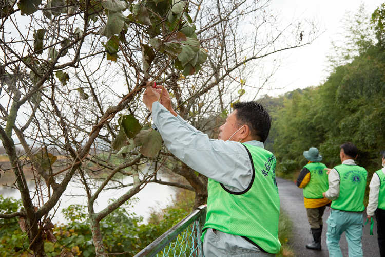 大阪府との間で結ばれた「アドプト・リバー・上之郷」協定で割り当てられたのは、上之郷地区の川原出橋から長滝井堰(せき)までの両岸、各1kmの区間。このプログラムでは年に3回以上の清掃活動実施が求められ、その他の活動内容については、趣旨が外れてさえいなければ団体側で比較的自由に決められる。泉佐野中央ライオンズクラブがまず考えたのは、「地域住民の皆さんに喜んでもらえる場所にしよう」ということ。そこで、殺風景だった川沿いに紅白の梅を植えることにした。当初は桜も検討されたが、植樹する場所が土手になっているため、斜面に植えるには広い範囲に大きく根を張る桜よりも梅の方が適していると判断した。