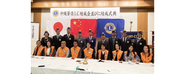 沖縄ライオンズクラブ(伊良波朝一会長/82人)のクラブ支部として2020年7月から活動してきた華僑支部が、2022年11月に正クラブとなり、新たに沖縄華僑ライオンズクラブ(利川慶会長/20人)として発足しました。日本国内では珍しい中国系クラブで、337-D地区(鹿児島県、沖縄県)内では100番目に設立されたクラブです。活動地域は那覇市を中心とした沖縄県内となっています。