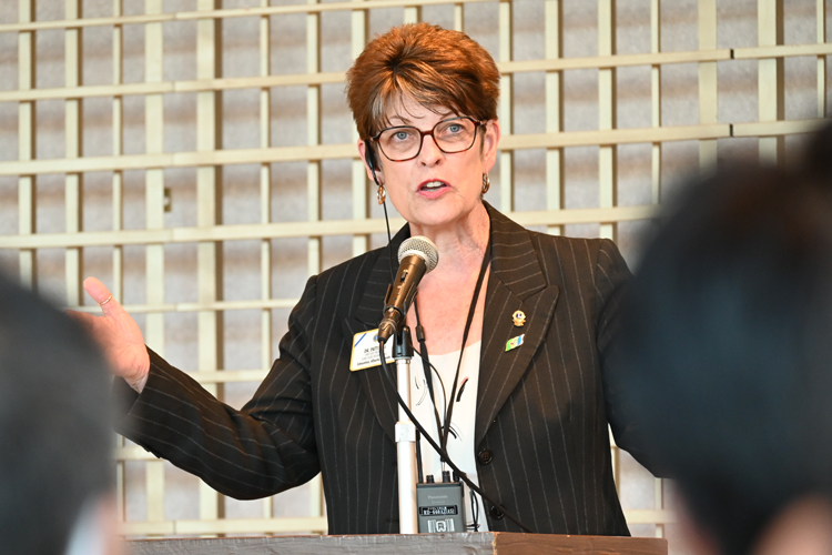 ヒル国際第1副会長は集まった国内のライオンズ・リーダーを前に約1時間にわたりスピーチを行い、コロナ禍の中で就任したダグラス・X・アレキサンダー前国際会長が訴えた「心からの奉仕を」のメッセージや、今年度のブライアン・E・シーハン国際会長が強調しているチームワークの重要性を訴えた他、今年度の重点項目について説明した。