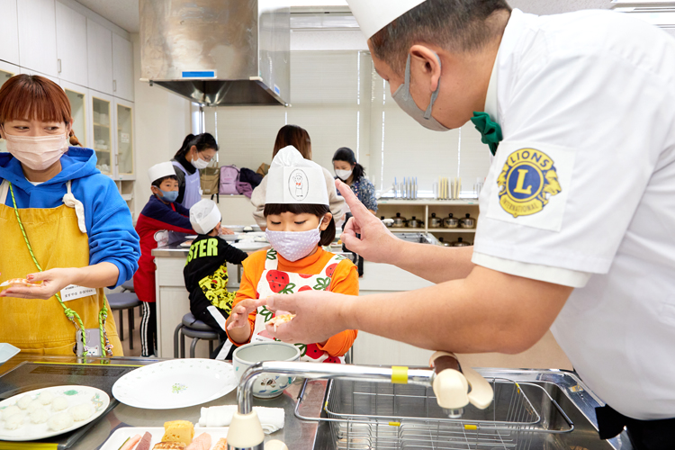こども食堂といえば、開催時間中の好きな時に訪れて、提供される料理を食べるというのが一般的だが、明石しおさいライオンズクラブ(松井寿美子会長/31人)が主催するこども食堂は、それとは少し様子が異なる。参加者は事前に予約をし、料理講師の指導の下、自ら作った料理を食べる。教えるのは現役のすし職人。握りずしを始め、やや難易度の高そうな日本料理が登場する。