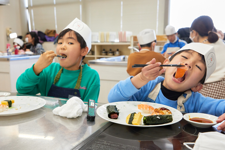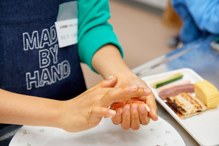 すし飯の上にネタを載せ、握る。言葉にすれば簡単そうだが、いざやってみるとこれが意外に難しい。子どもも大人も悪戦苦闘する姿が目立ったが、終始会話が弾んで親子で協力してすしを完成させていたのが印象的だった。