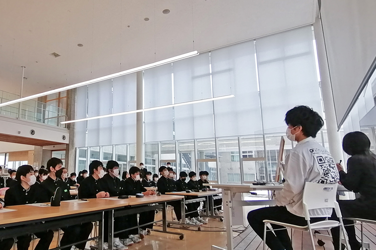 三浦さんは生徒から「新しい目標は?」との質問に、「もっと高度で専門的な資格を取得したい」と回答。金森さんは「建築の仕事をしたい」という後輩に対して、「家の手伝いをすると手先が器用になる。日々の目標を持つことが大切」と助言した。また文学に造詣(ぞうけい)の深い桶井さんは、学生時代に触れた作品がきっかけで警察官に憧れを抱き現職に就いたという自身の物語を語り、澤田さんは「勉強と部活を両立させ、自分の将来の目標を決めてがんばってほしい」と後輩たちにエールを送った。母校での開催ということもあり、「同じ学び舎の生徒」という共通認識の中で互いの心の距離が縮まったようで、質疑応答は絶え間なく続いた。