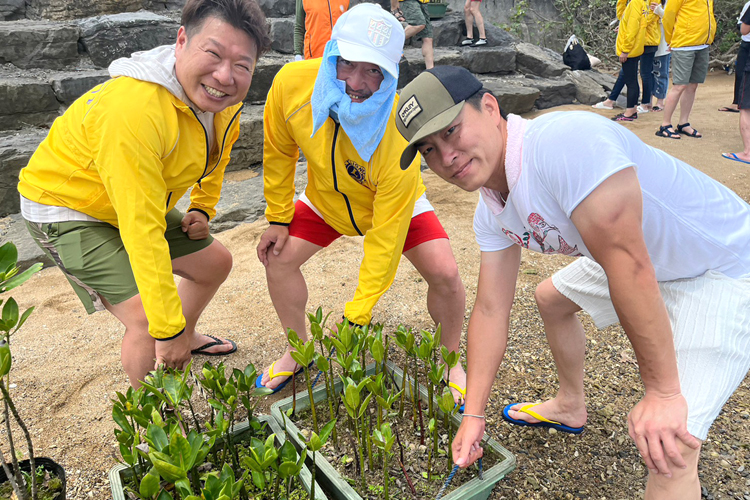 今回当クラブからは、コロナ禍中に入会した新会員も大勢参加した。約2時間かけて苗400本を植栽した他、以前植えた苗に絡み付いていたゴミなどを除去。また苗にくっついて栄養を吸い取り枯らしてしまう巻き貝やフジツボを取り除く作業を行った。当日の作業は数時間だが、八重山ライオンズクラブの皆さんがそのための準備にかける時間や手間は大変なものだ。実際に現地に足を運んで自分たちで手がけることで、その苦労がよく分かるし、マングローブへの思い入れも生まれる。それが、長年にわたって交流が続いてきた要因の一つだと思う。来年も石垣島を訪問して共に植えたヒルギの成長を確認し、また新たな苗を植えて、一日も早くマングローブの森が復活するように励みたい。