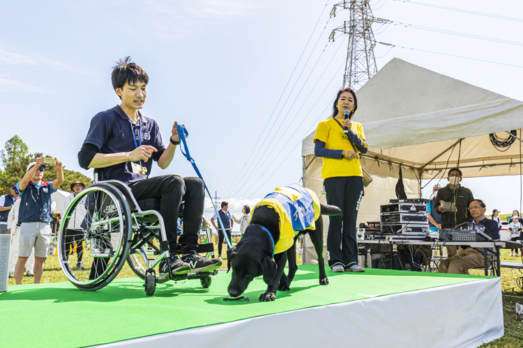2020年からの3年間は新型コロナウイルス感染拡大の影響で中止となり、今年は4年ぶりに第8回となる大会が開催された。当日の4月16日は晴天に恵まれ、絶好のマラソン日和。スタート前には介助犬のデモンストレーションが行われ、車いすに乗った使用者が落とした鍵を、介助犬が口を使って拾い、差し出す様子などが披露された。介助犬の賢さを目の当たりにして、その様子をスマートフォンで撮影する人の姿が多く見られ、関心の高さがうかがえた。