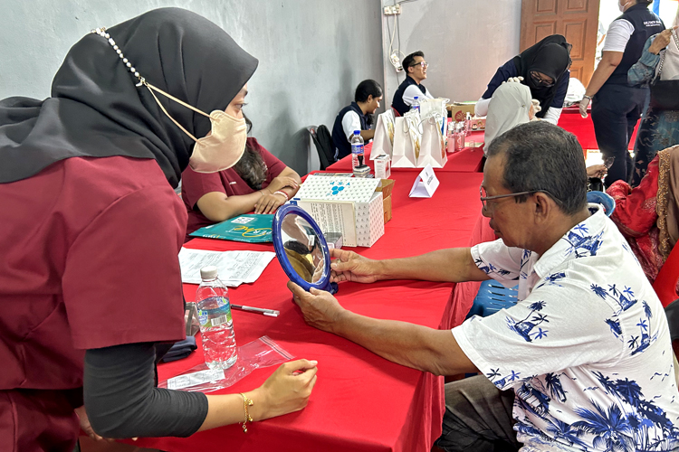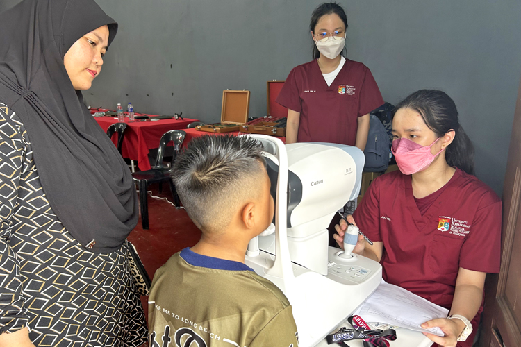 当事業の最初の計画では、甲南大学とつながりのあるマレーシア国民大学と連携し、集めた眼鏡を大学生が現地へ持参して配布することを目指していた。今年5月、この計画の実現に向けて、甲南大学のシャーリ・ヤマモト特任講師が、収集した眼鏡を持ってマレーシアを訪問。その後、マレーシア国民大学の教授の引率で学生グループが南部ジョホール州の漁村を訪れ、コミュニティー・サービスの一環として地域住民の視力検査を行い、必要とする住民に眼鏡を配布した。