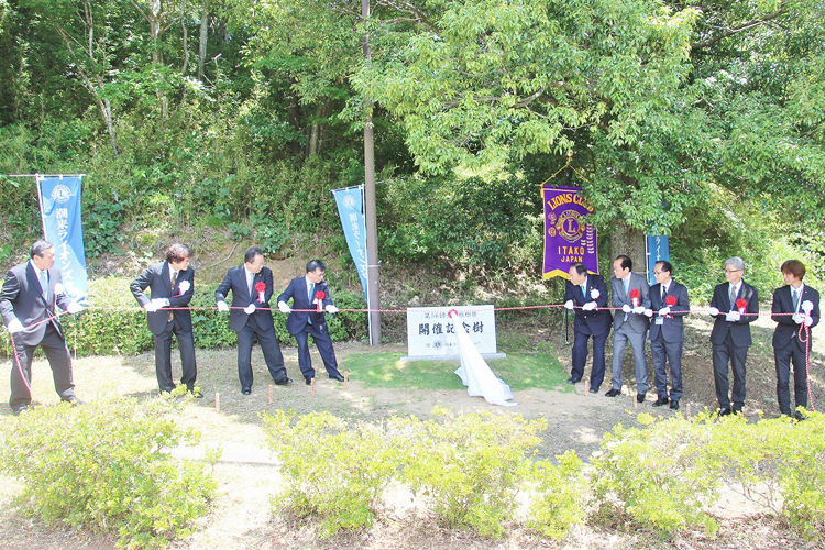 潮来ライオンズクラブ(江口誠一会長/106人)は6月21日、クラブ結成20周年の記念事業の一つとして、潮来市にある「茨城県水郷県民の森」に石碑を寄贈、除幕式を行った。またこれに先立ち、6月18日に清掃活動を実施した。当クラブは毎年7月にこの森で清掃を行っているが、今回は除幕式の日程に合わせて前倒しで実施した。