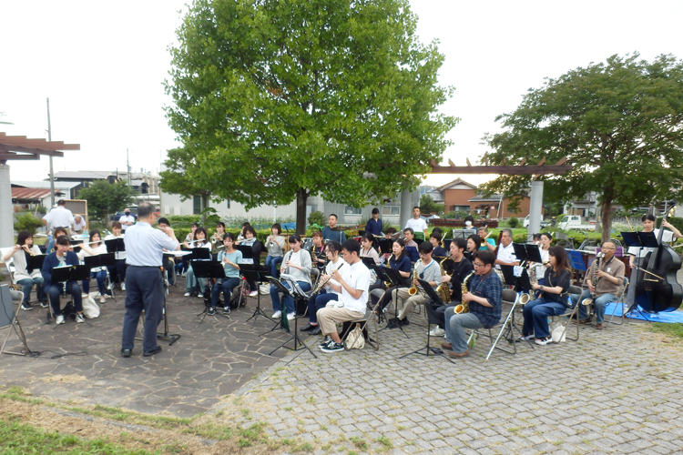 姫路ウインドアンサンブルは1986年に創設された30年余りの歴史を持つ楽団で、定期演奏会の他に幼稚園、小学校、公民館等で演奏を行うなど、地域社会への貢献活動も積極的に行っている。クラブ会長の私がこの楽団に所属している縁で、野外コンサートの企画が実現することになった。