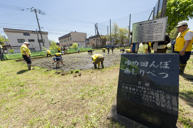 当時のクラブには農業関係者が15人ほどいたので、水田の造成と、その後の管理・運営のめどもついた。札幌市と教育委員会の協力も取り付け、清田小学校の児童を対象とした昔ながらの稲作の体験事業が実現することになった。水田の名前は、児童へのアンケートにより「ゆめ田んぼ・あしりべつ」に決定。「ゆめ田んぼ」の愛称で親しまれている。