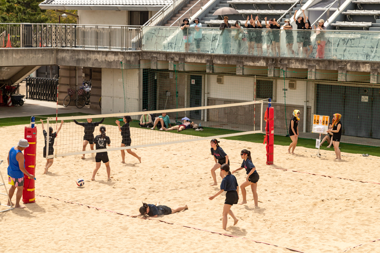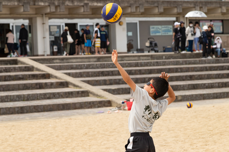 ビーチバレーの公式試合は通常、1チーム2人の2人制だが、岬ライオンズクラブの大会は4人制で行われ、各部門で予選リーグ、決勝トーナメントを戦う。ビーチバレーならではのルールで、オーバーハンドのサーブレシーブや指の腹を使ったフェイントは反則。出場者のほとんどはバレーボール部の部員やその経験者なので、慣れないルールや砂のコートに戸惑う様子も見られた。小学生の部の選手に感想を尋ねたところ、「走りにくいし、ジャンプしにくい」「風があるので難しい」という答え。それでも、競技が進むにつれてラリーが続くようになり、白熱した試合が展開された。