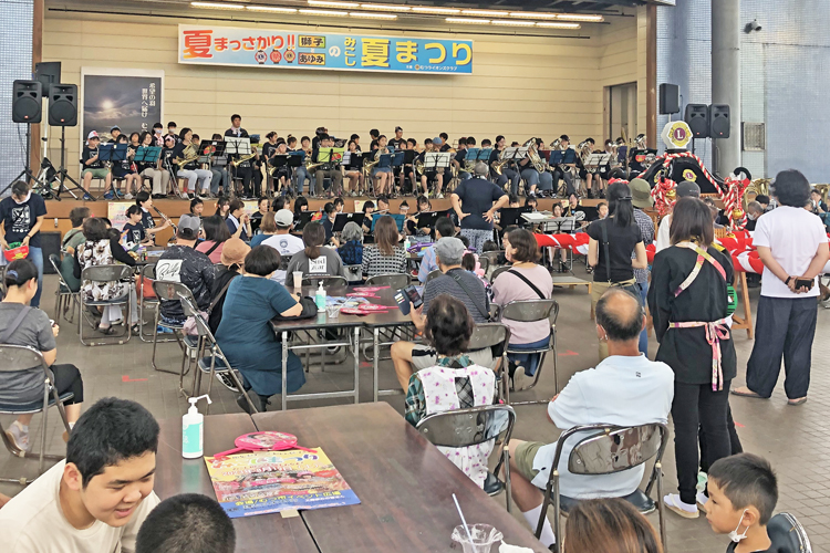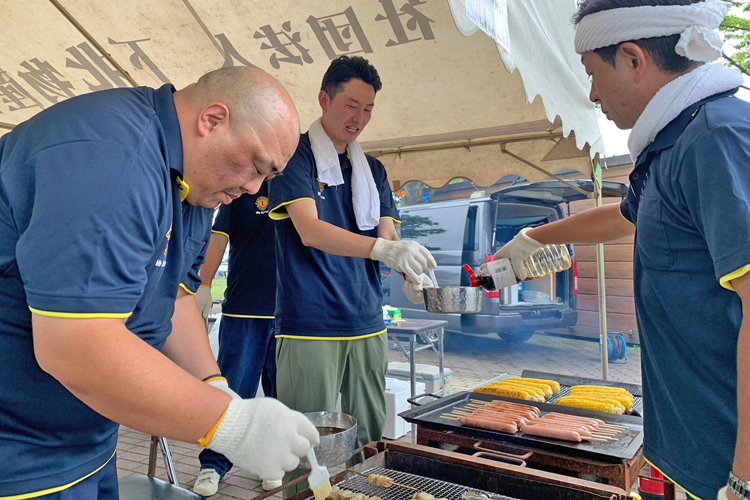 会場ではみこしを担ぐだけではなく、食べ物を中心に出店が並び、バルーンショーや吹奏楽団の演奏など多彩なステージショーも行われた。最後は来場者が皆で大きな輪をつくり、盆踊りでフィナーレを迎えた。東通ライオンズクラブ、むつみらいライオンズクラブ、下北ネクスト ライオンズクラブも、子ども向けのクジや、パン、ホタテの串焼きなどの販売店を出して、祭りを盛り上げてくれた。地元の人たちが出店することで、少なからず地域経済活性化への一助になると思う。
